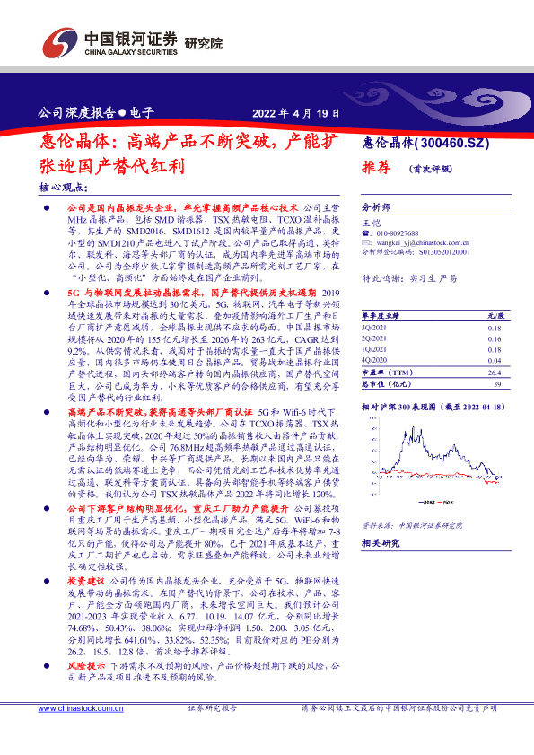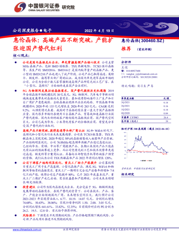 【银河证券】【20220419】惠伦晶体:高端产品不断突破,产能扩张迎国产替代红利-31页
