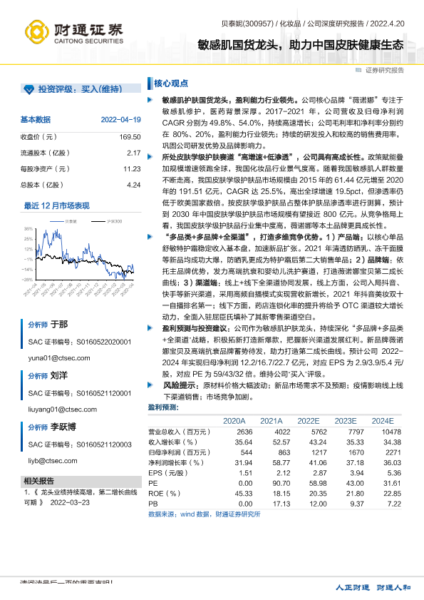 【财通证券】【20220420】20220420-财通证券-贝泰妮-300957.SZ-敏感肌国货龙头,助力中国皮肤健康生态-34页