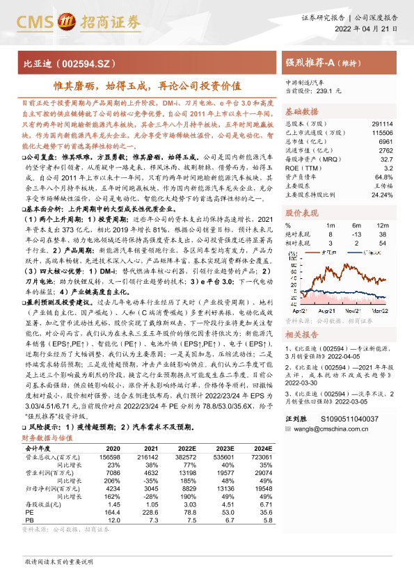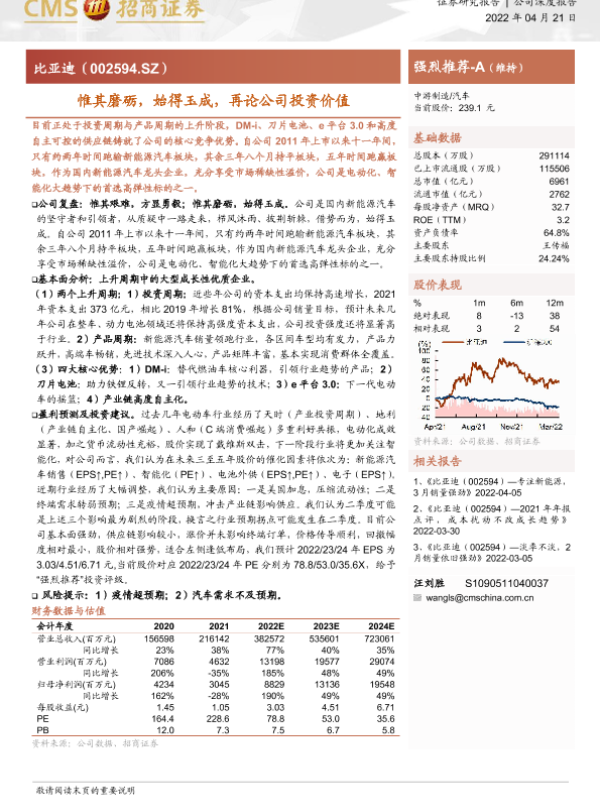 投资价值 新能源汽车 比亚迪 汽车行业 资本市场