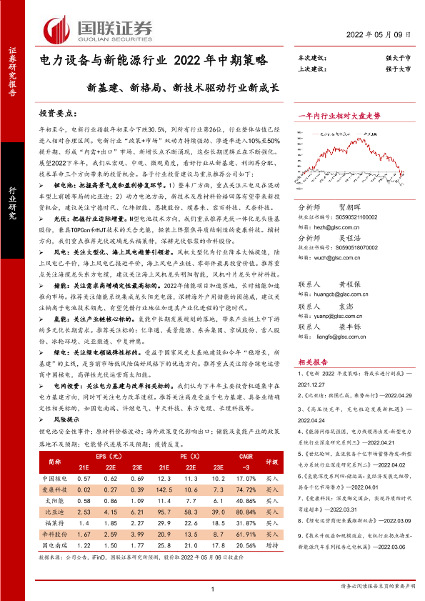 【国联证券】【20220509】电力设备与新能源行业2022年中期策略:新基建、新格局、新技术驱动行业新成长-64页