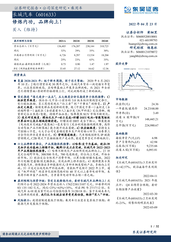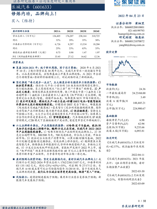 【东吴证券】【20220423】长城汽车(601633):修炼内功,品牌向上!-32页