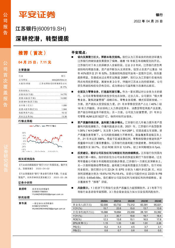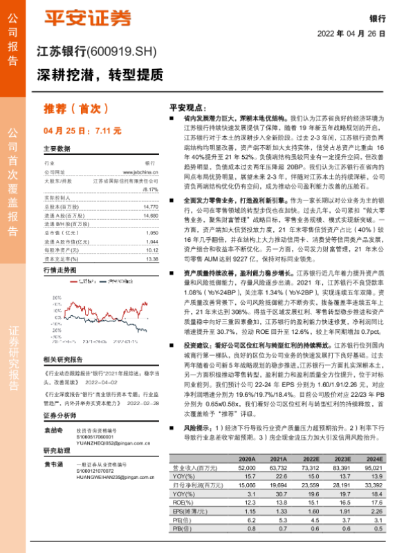 【平安证券】【20220426】江苏银行-600919.SH-深耕挖潜,转型提质-25页