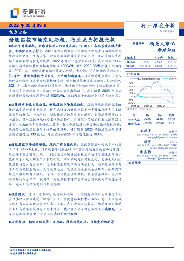 【安信证券】【20220509】电力设备行业深度分析:储能温控市场乘风而起,行业龙头把握先机-30页