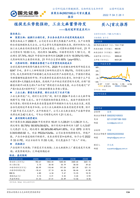 【国元证券】【20220428】隐形冠军深度系列六:植提龙头势能强劲,工业大麻蓄势待发-34页