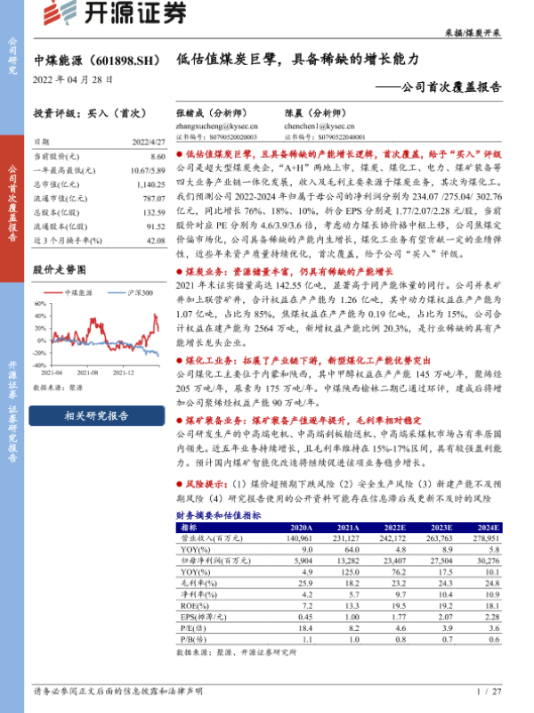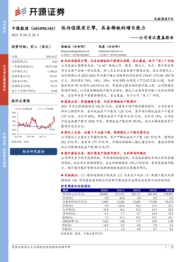 【开源证券】【20220428】中煤能源-公司首次覆盖报告:低估值煤炭巨擘,具备稀缺的增长能力-27页