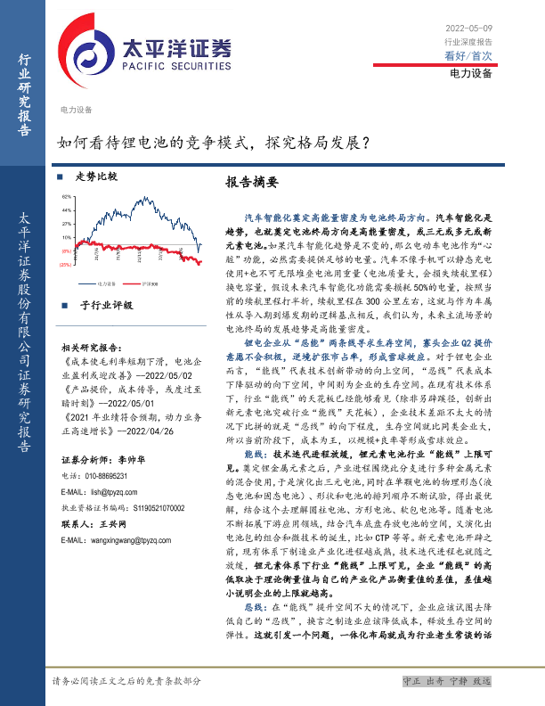 【太平洋证券】【20220509】电力设备行业:如何看待锂电池的竞争模式,探究格局发展?-20页