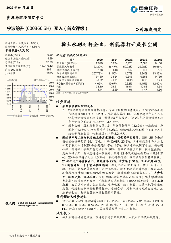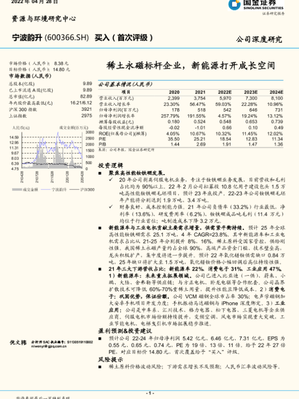 【国金证券】【20220428】宁波韵升-600366.SH-稀土永磁标杆企业,新能源打开成长空间-26页