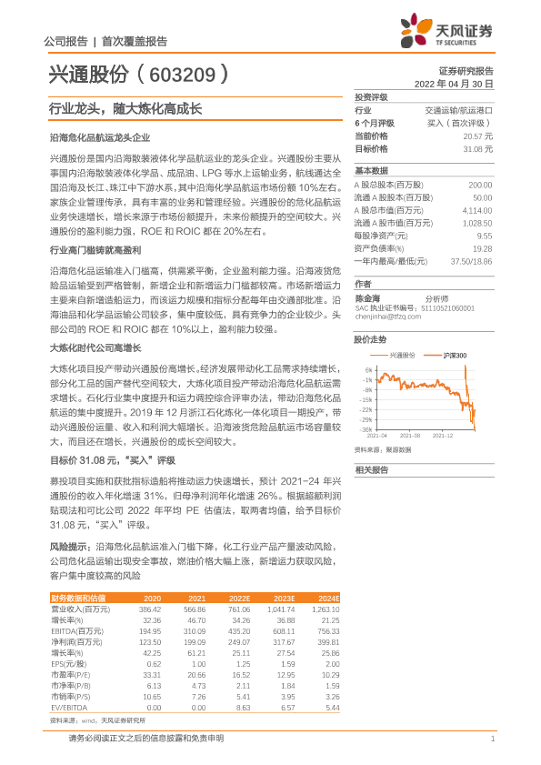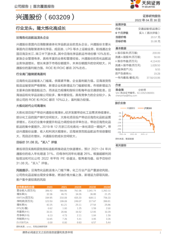 【天风证券】【20220430】兴通股份-行业龙头,随大炼化高成长-20页