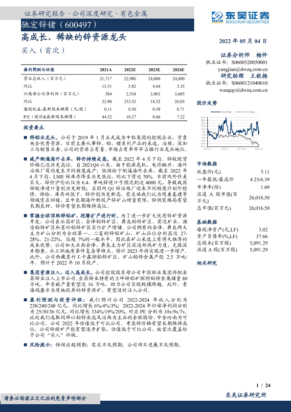 【东吴证券】【20220504】驰宏锌锗(600497):高成长、稀缺的锌资源龙头-24页