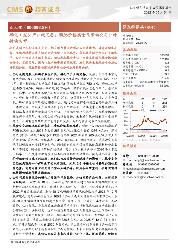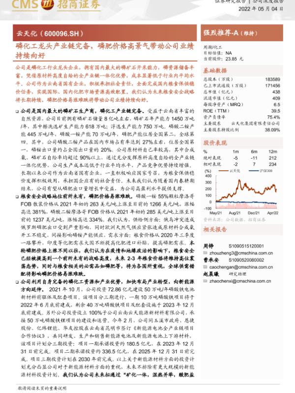 【海通证券】【20220504】云天化-600096.SH-磷化工龙头产业链完备,磷肥价格高景气带动公司业绩持续向好-31页