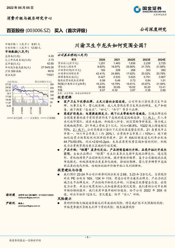 【国金证券】【20220505】国金证券-百亚股份-003006.SZ-川渝卫生巾龙头如何突围全国?-25页