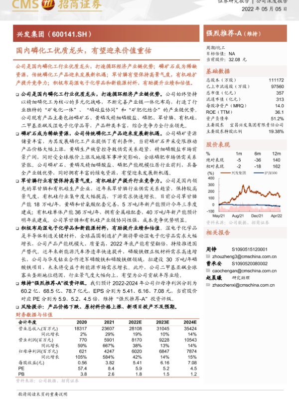 【海通证券】【20220505】兴发集团-600141.SH-国内磷化工优质龙头,有望迎来价值重估-35页