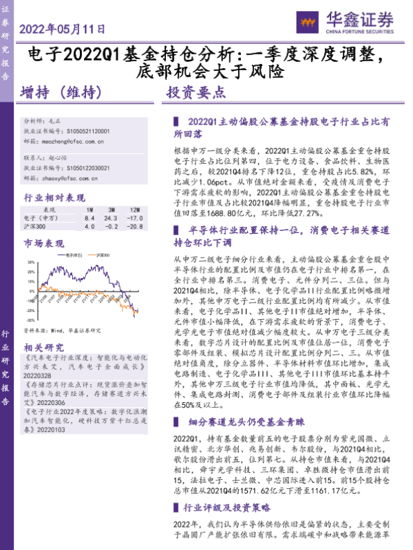 【华鑫证券】【20220511】电子行业2022Q1基金持仓分析:一季度深度调整,底部机会大于风险-17页