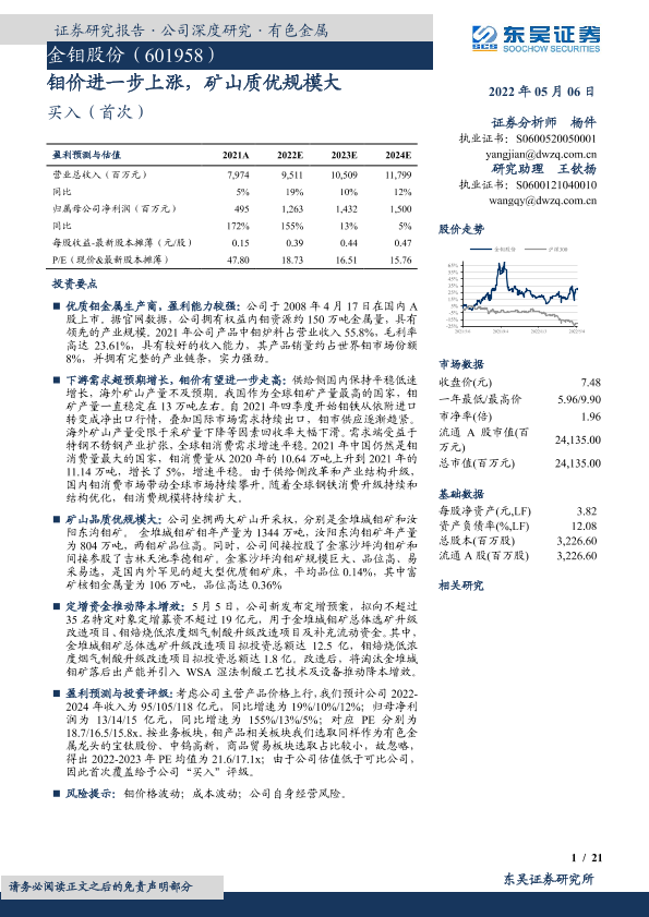 【东吴证券】【20220506】金钼股份:钼价进一步上涨,矿山质优规模大-21页