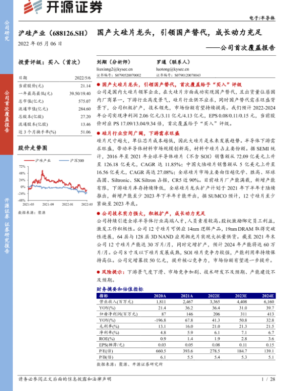 【开源证券】【20220506】20220506-开源证券-沪硅产业-688126.SH-公司首次覆盖报告:国产大硅片龙头,引领国产替代,成长动力充足-28页