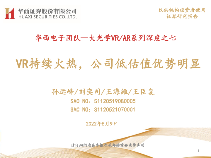 【华西证券】【20220509】电子行业大光学VRAR系列深度之七:VR持续火热,公司低估值优势明显-51页