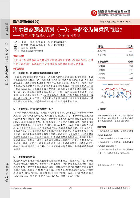 【浙商证券】【20220506】海尔智家深度系列(一):卡萨帝为何乘风而起?-21页