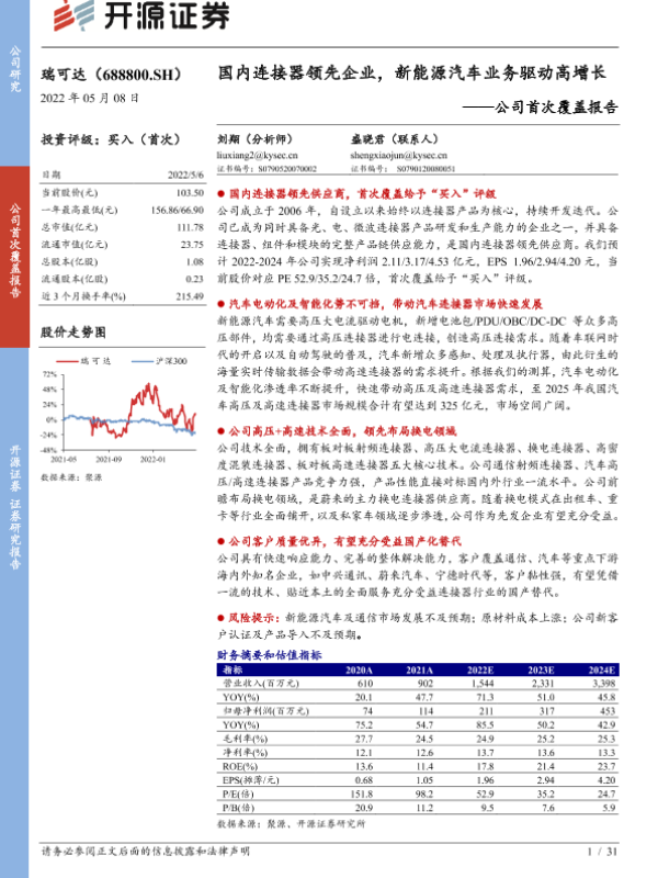 【开源证券】【20220508】国内连接器领先企业,新能源汽车业务驱动高增长-31页