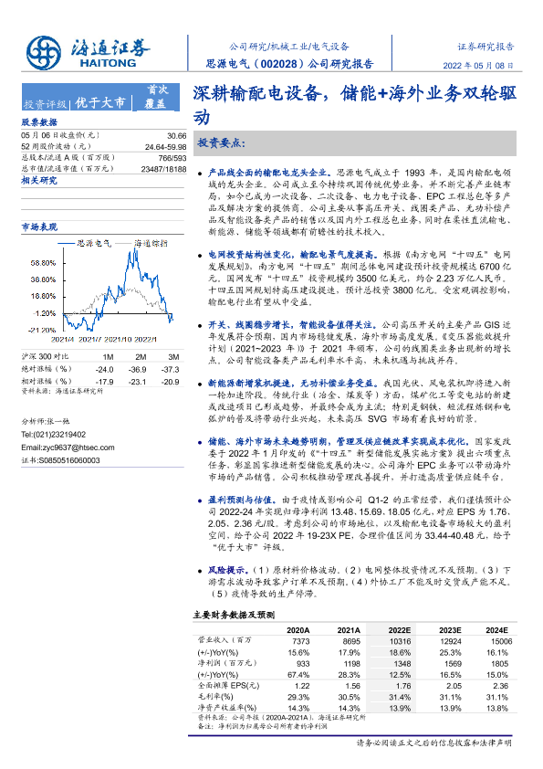 【海通证券】【20220508】思源电气-002028.SZ-公司研究报告:深耕输配电设备,储能+海外业务双轮驱动-29页