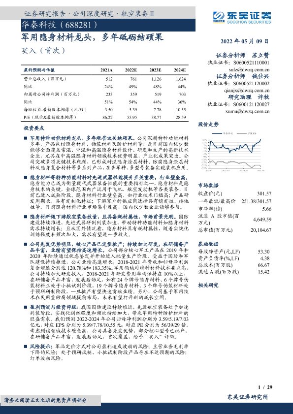 【东吴证券】【20220509】华秦科技-军用隐身材料龙头,多年砥砺结硕果-29页