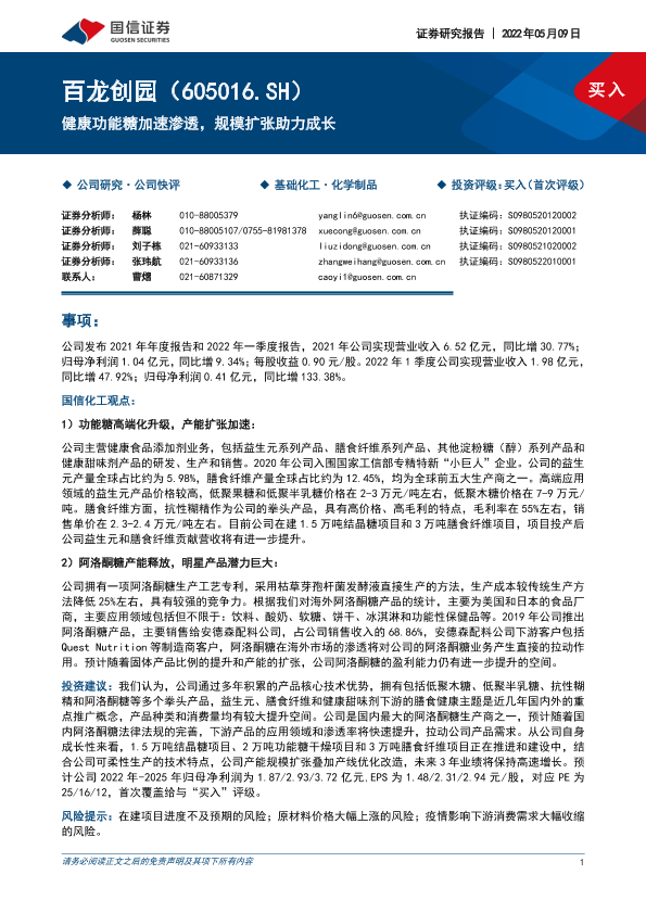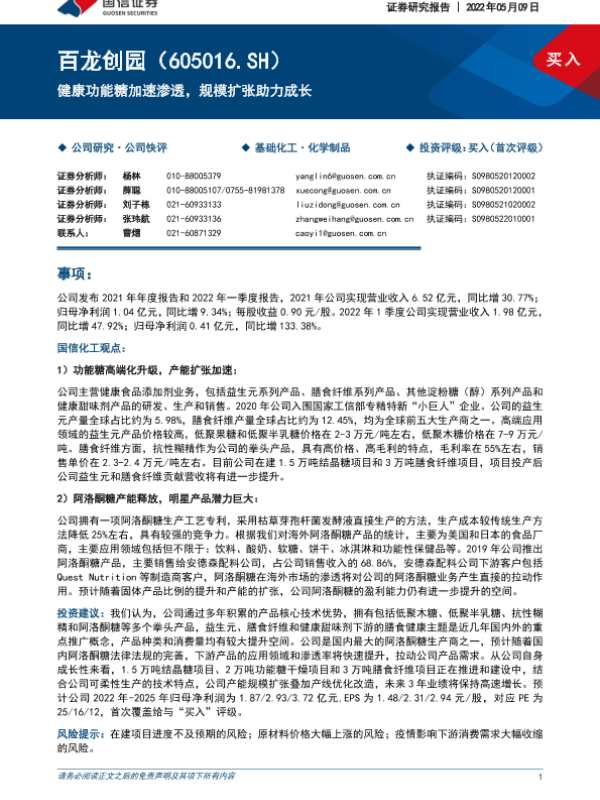 【国信证券】【20220509】百龙创园-健康功能糖加速渗透,规模扩张助力成长-25页