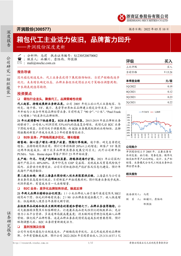 【浙商证券】【20220510】开润股份深度更新:箱包代工主业活力依旧,品牌蓄力回升-17页