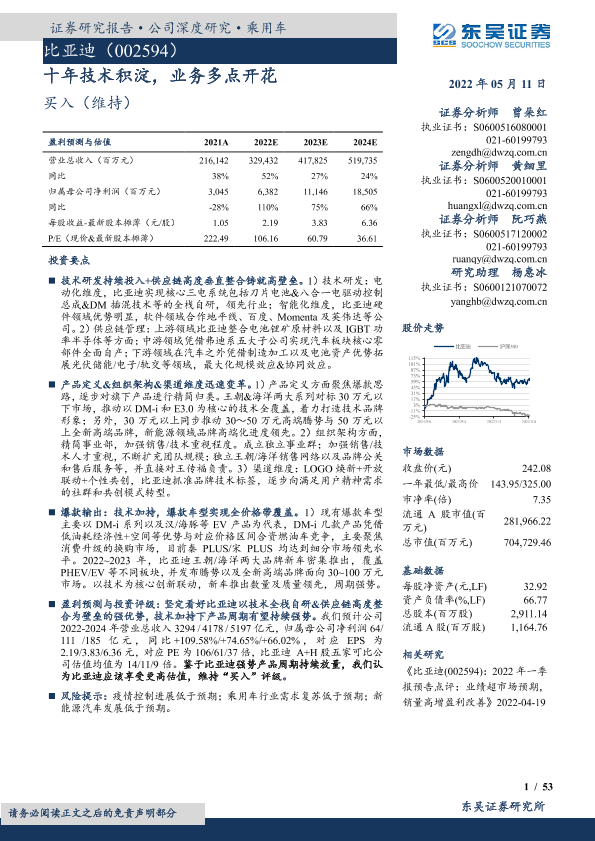【东吴证券】【20220511】比亚迪-十年技术积淀,业务多点开花-53页