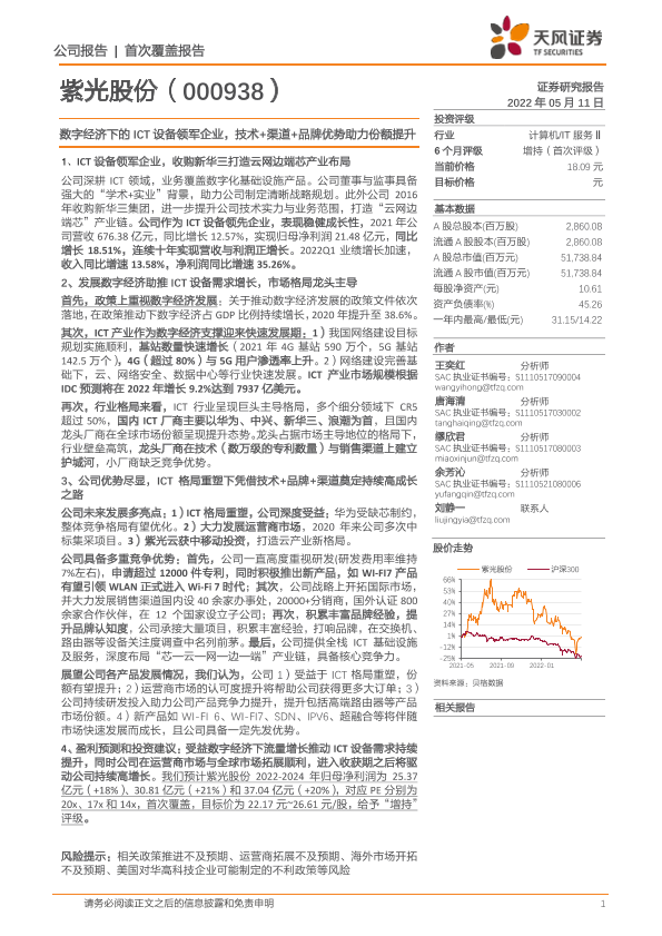【天风证券】【20220511】20220511-天风证券-紫光股份-000938.SZ-数字经济下的ICT设备领军企业,技术+渠道+品牌优势助力份额提升-47页