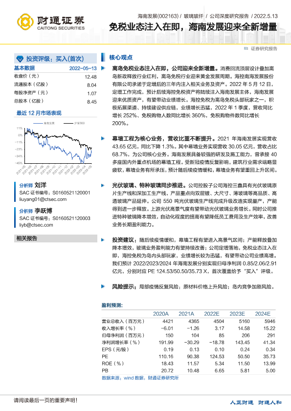 光伏玻璃 免税业态 幕墙工程 海南发展 特种玻璃