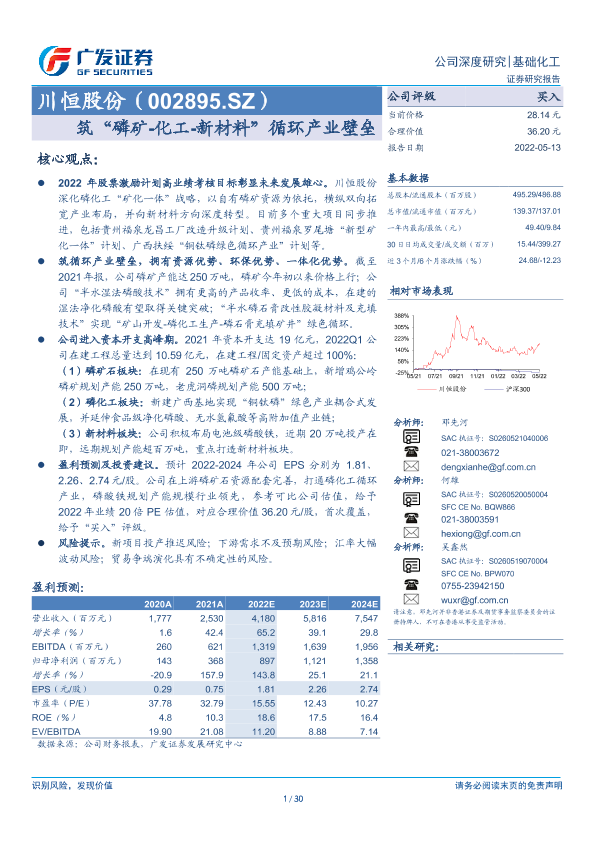 【广发证券】【20220513】筑“磷矿-化工-新材料”循环产业壁垒-30页