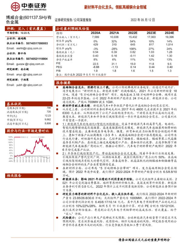 【中泰证券】【20220512】20220512-中泰证券-博威合金-601137.SH-新材料平台化龙头,领航高端铜合金领域-27页