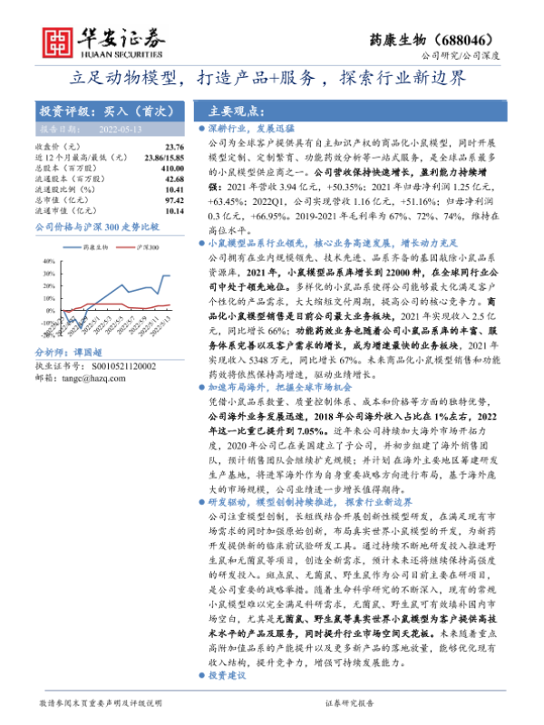 【华安证券】【20220513】立足动物模型,打造产品+服务,探索行业新边界-23页