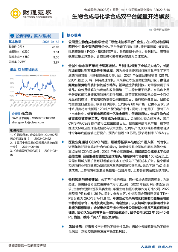 【财通证券】【20220514】20220514-财通证券-金城医药-300233.SZ-生物合成与化学合成双平台能量开始爆发-35页
