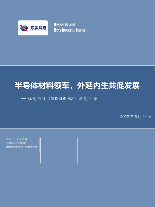 【信达证券】【20220514】20220514-信达证券-雅克科技-002409.SZ-深度报告:半导体材料领军,外延内生共促发展-31页