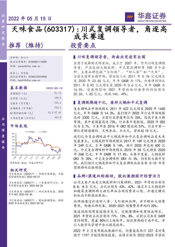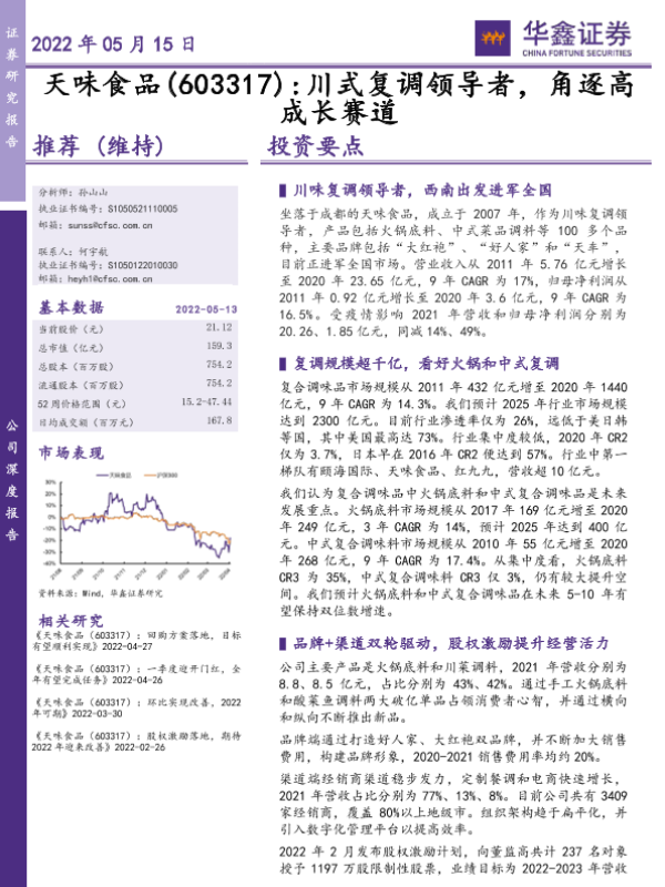 【华鑫证券】【20220515】天味食品(603317) 川式复调领导者,角逐高成长赛道-39页