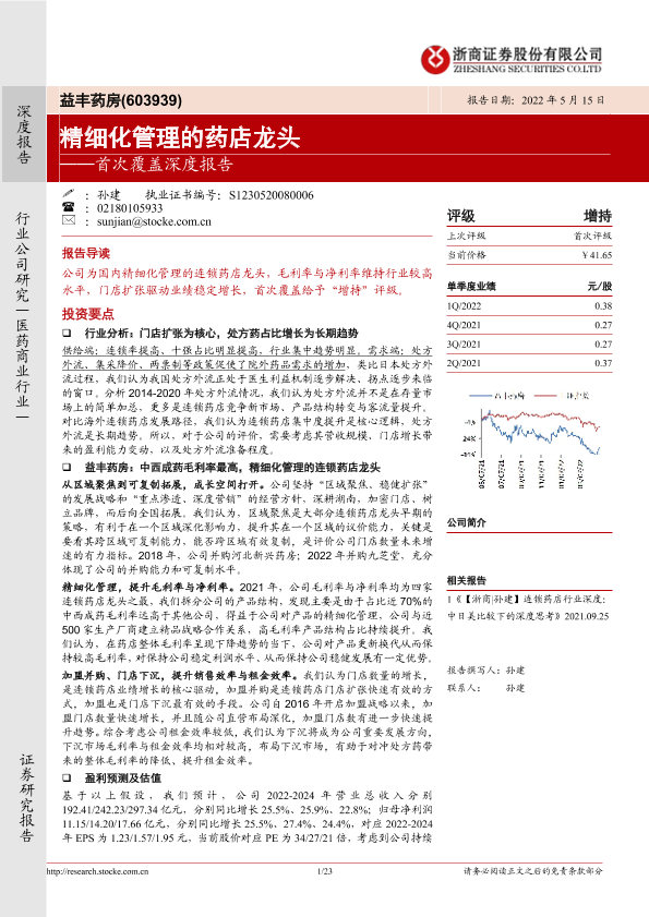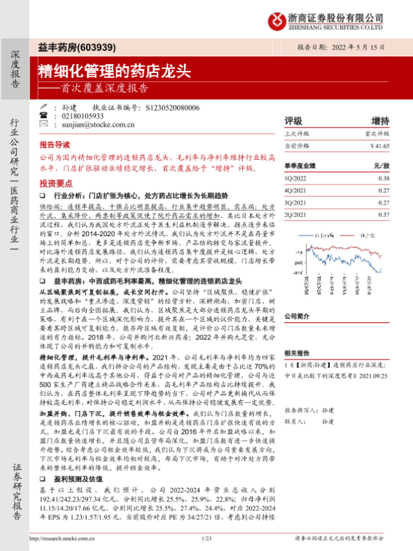 【浙商证券】【20220515】20220515-浙商证券-益丰药房-603939.SH-首次覆盖深度报告:精细化管理的药店龙头-23页