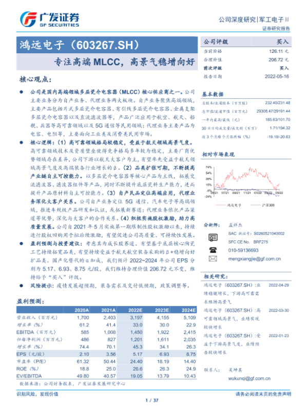 【广发证券】【20220516】鸿远电子(603267.SH):专注高端MLCC,高景气稳增向好-37页