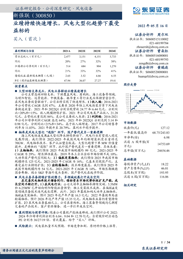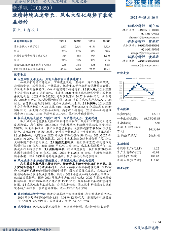 【东吴证券】【20220516】新强联(300850)业绩持续快速增长,风电大型化趋势下最受益标的-34页