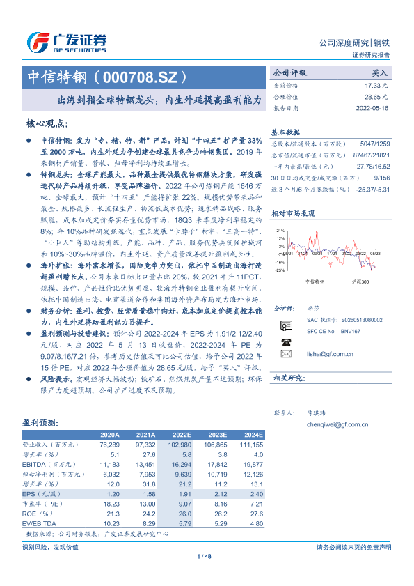 【广发证券】【20220516】出海剑指全球特钢龙头,内生外延提高盈利能力-48页