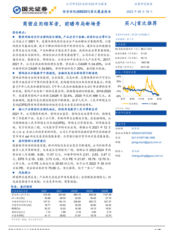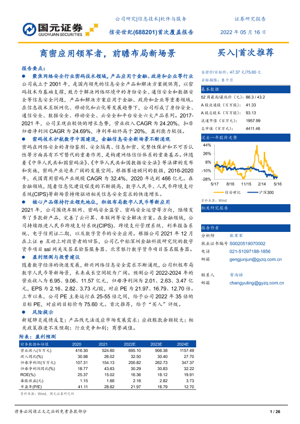 【国元证券】【20220516】20220516-国元证券-信安世纪-688201.SH-首次覆盖报告:商密应用领军者,前瞻布局新场景-26页