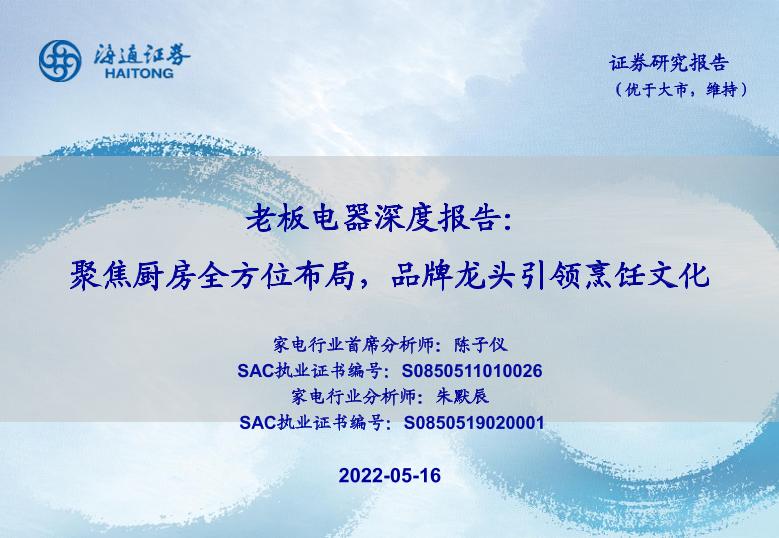 【海通证券】【20220516】老板电器深度报告:聚焦厨房全方位布局,品牌龙头引领烹饪文化-36页