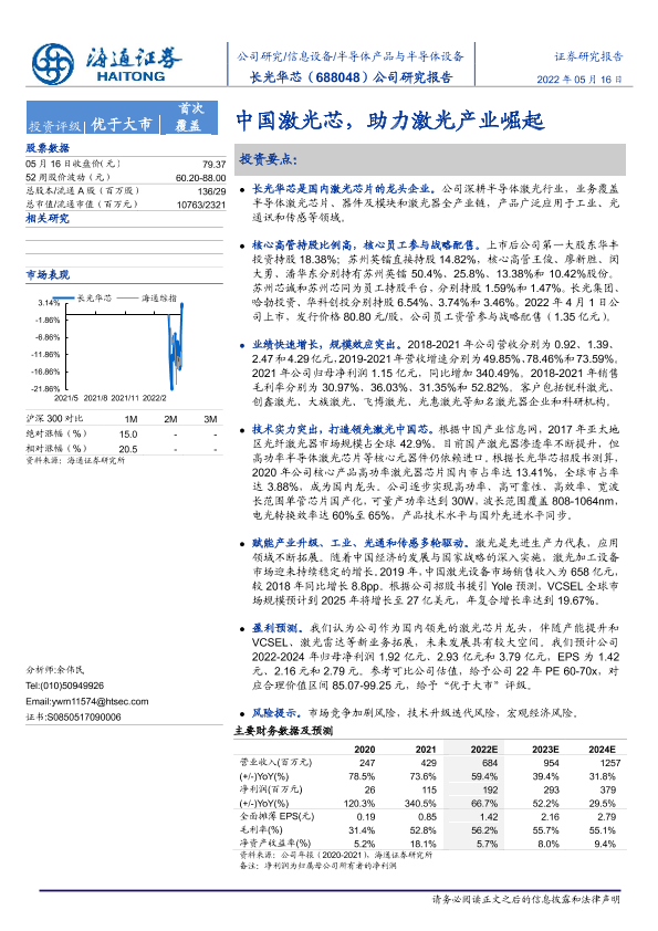 【海通证券】【20220516】20220516-海通证券-长光华芯-688048.SH-中国激光芯,助力激光产业崛起-37页