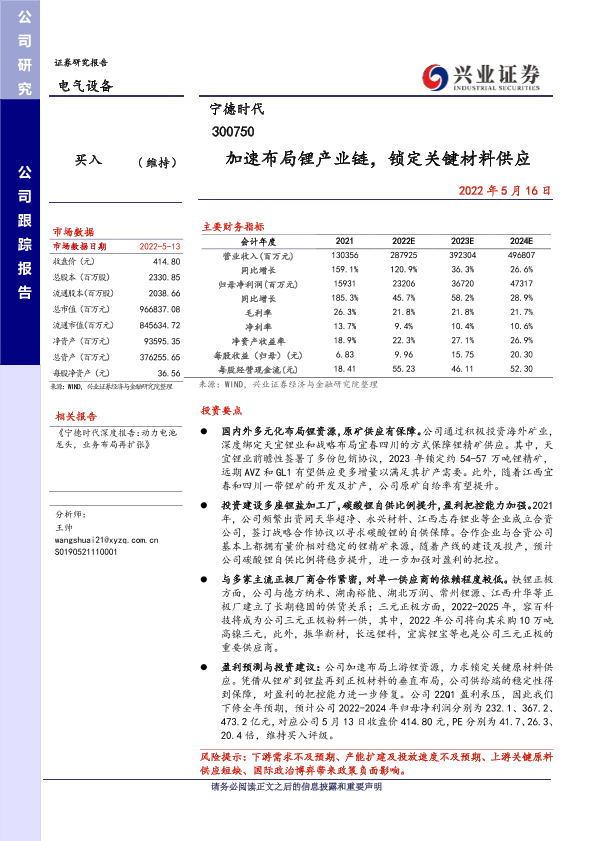 【兴业证券】【20220516】加速布局锂产业链,锁定关键材料供应-30页