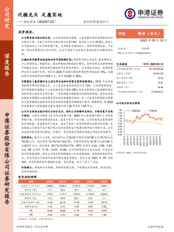 【申港证券】【20220516】代糖龙头 足履实地——金禾实业(002597.SZ)-29页