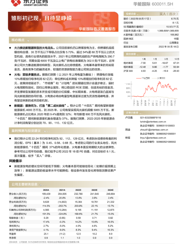 【东方证券】【20220518】华能国际首次覆盖报告:雏形初已现,且待显峥嵘-29页