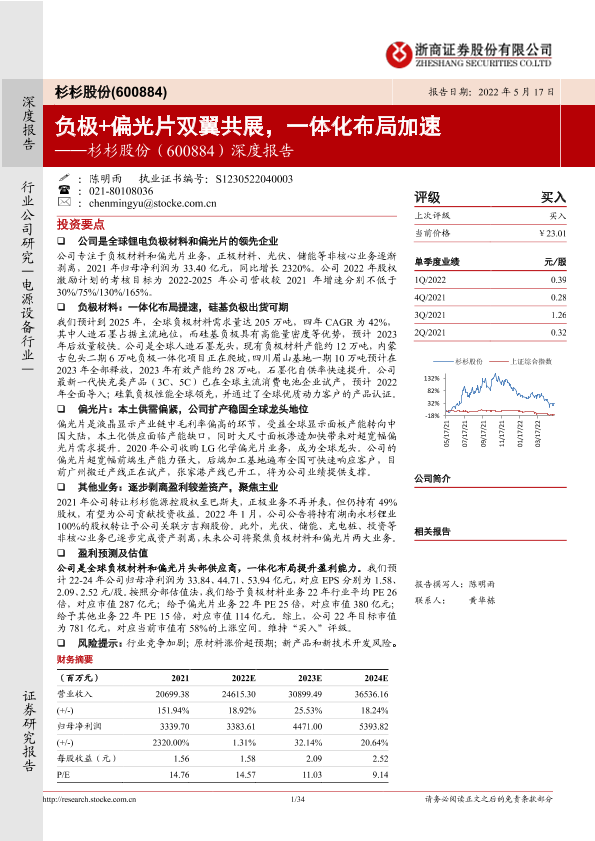 【浙商证券】【20220517】20220517-浙商证券-杉杉股份-600884.SH-深度报告:负极+偏光片双翼共展,一体化布局加速-34页