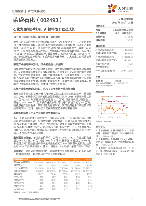 【天风证券】【20220517】20220517-天风证券-荣盛石化-002493.SZ-石化为盾筑护城河,新材料为矛驱动成长-29页