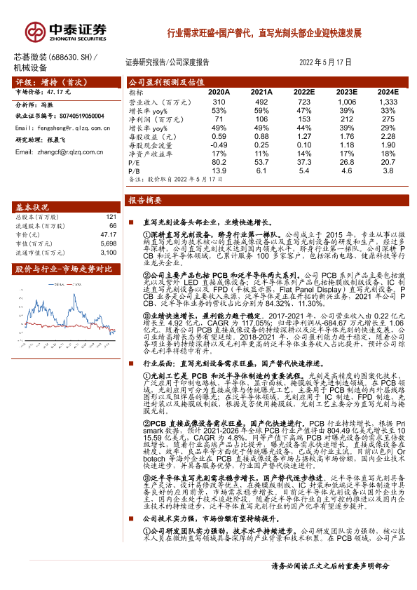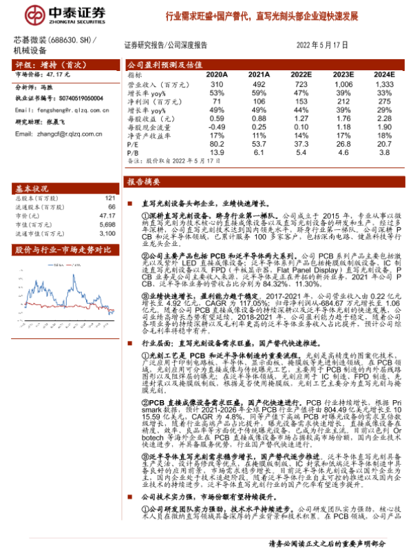 【中泰证券】【20220517】中泰证券-芯碁微装-行业需求旺盛+国产替代,直写光刻头部企业迎快速发展-31页