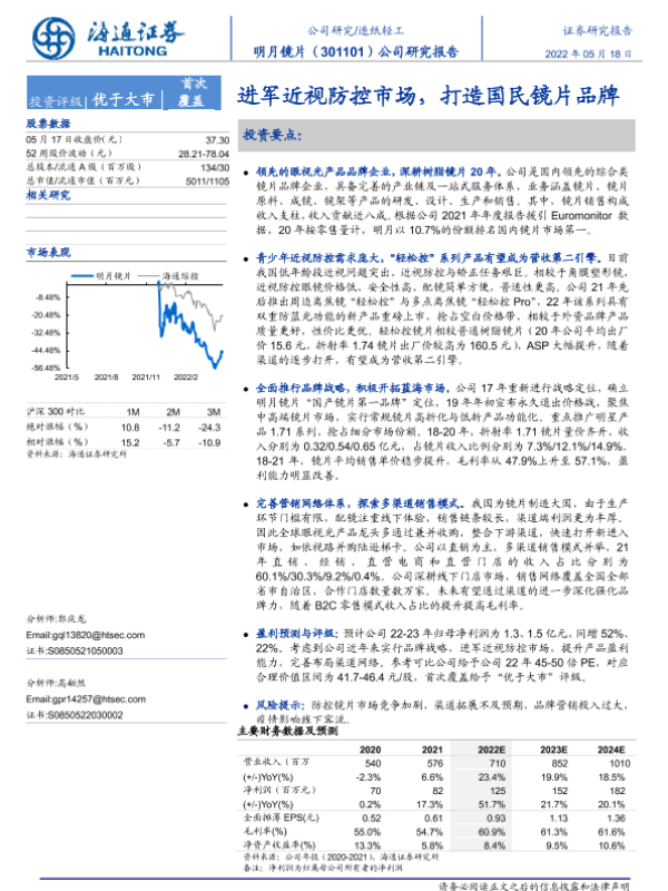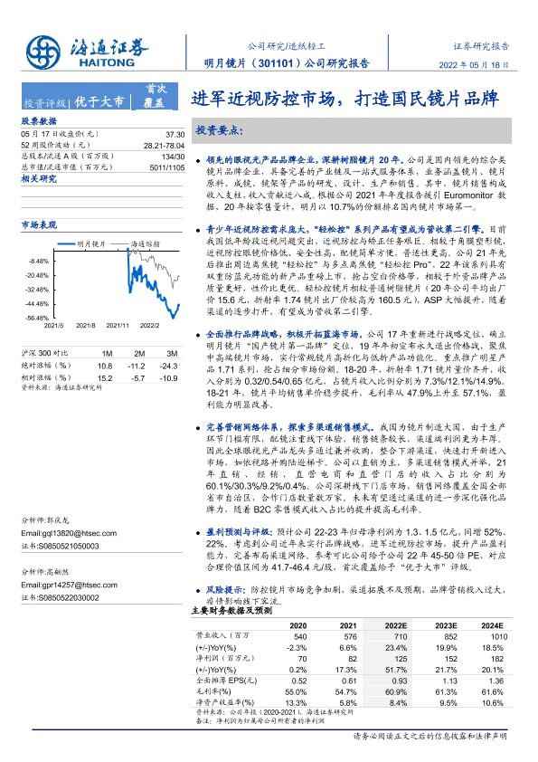 【海通证券】【20220518】明月镜片-进军近视防控市场,打造国民镜片品牌-35页