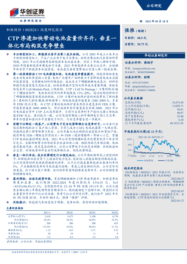 【华创证券】【20220518】20220518-华创证券-和胜股份-002824.SZ-深度研究报告:CTP渗透加快带动电池盒量价齐升,垂直一体化布局构筑竞争壁垒-24页